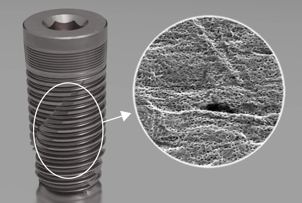 BSSF植體表面結構可穩定進行植體旋入旋出之測試與術程,不易產生如電化學濕式表面處理技術植體之非等向性蝕刻結構,易於旋入旋出時產生劈裂與脫落之缺點,亦可使植體表面有效降低彈性模數至與人體骨組織相近,避免應力遮蔽效應之產生,減少植體周圍組織吸收流失導致之脫落風險。SEO關鍵字句